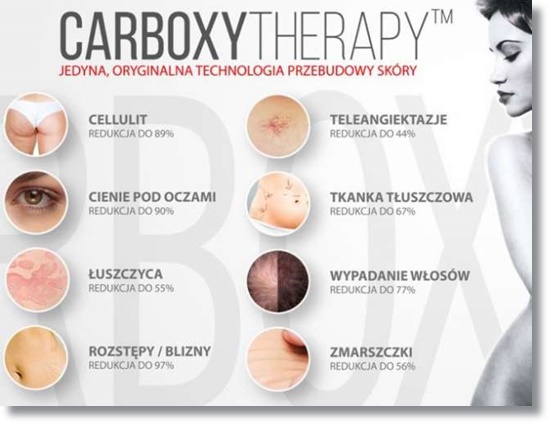 Przeprowadzone badania kliniczne wykazały, że iniekcje dwutlenku węgla urządzeniem CARBOXYTHERAPY wpływają na zwiększenie procesów naprawczych, poprzez tworzenie nowych naczyń krwionośnych (neowaskularyzacja), rozszerzenie istniejących (rewaskularyzacja) oraz aktywację adipocytów (komórek tłuszczowych) w celu uaktywnienia procesów lipolizy.